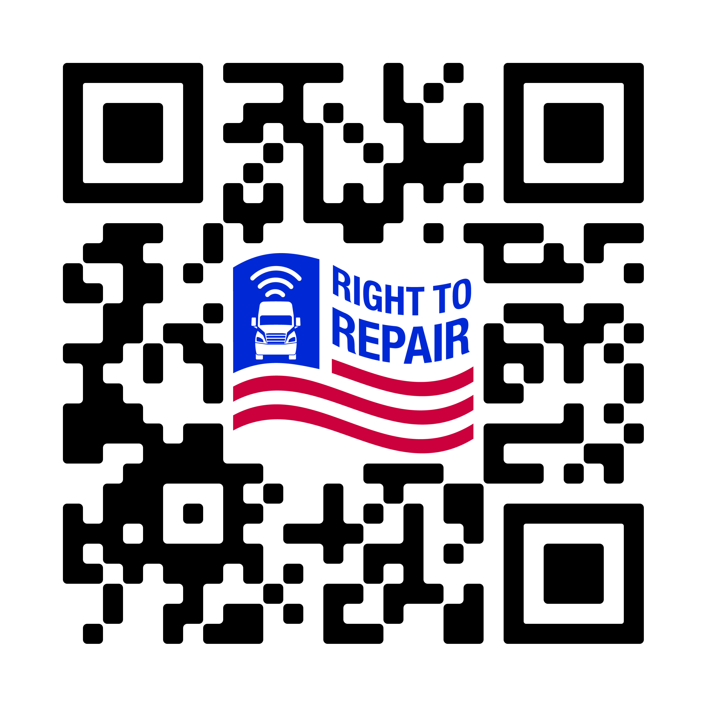 We’ve made it quick and easy for you … simply complete the brief form by clicking here or scan the QR Code to the right and your support for the REPAIR Act will be sent directly to your local congressional leaders. Don’t delay! The more support the bill has, the more likely it is to become law – protecting consumer rights and the livelihoods of hundreds of thousands of drivers, fleet operators, distributors, service technicians and business owners throughout the U.S.